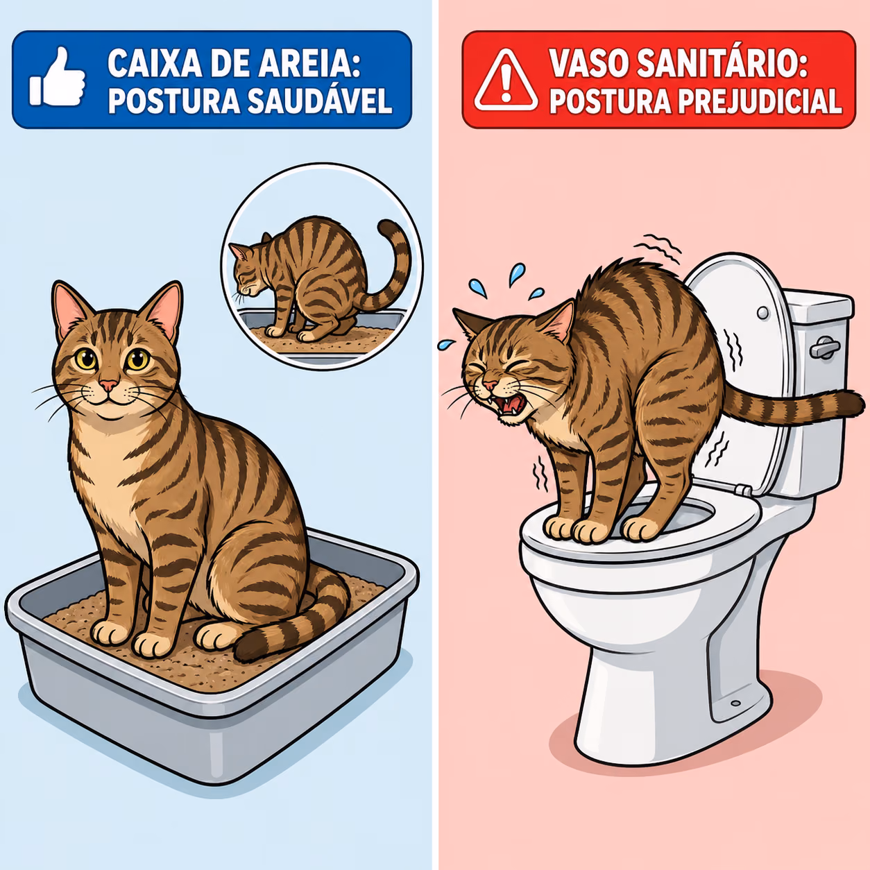 Quando o vaso sanitário substitui a caixa, esse conjunto de sinais desaparece. O efeito não é imediato, mas pode refletir-se em tensão entre os animais ou em mudanças discretas de comportamento.